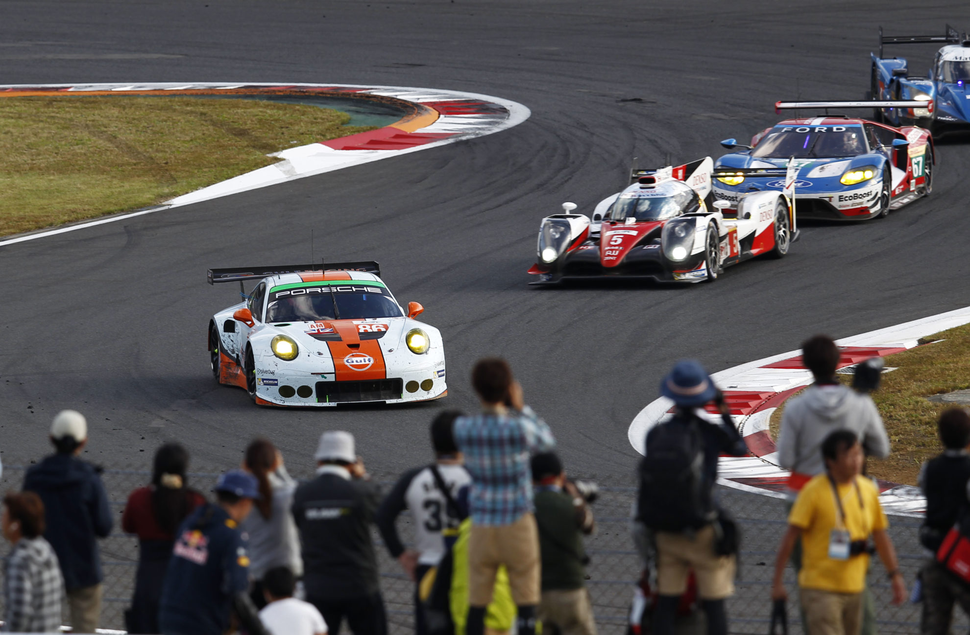 Barker proved true to his word as, taking the start for the third time in as many races, he quickly gained positions, moving up to fourth in the GTE-Am class by passing both the KCMG and Abu Dhabi-Proton Racing Porsches. Further progress was limited by the fact that the other marques in the category found Fuji more to their liking than recent venues, leaving the Porsches to battle amongst themselves, but Barker handed the #86 machine over at the head of the ‘class within a class’.