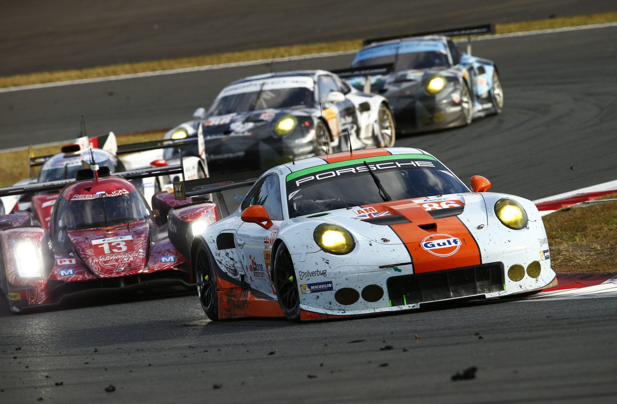 Unfortunately for the Gulf team, its fortunes took a turn for the worse when Wainwright, having taken over behind the wheel, was hit by the #88 Abu Dhabi-Proton entry, spinning the owner-driver around and costing him a substantial time loss while the car was recovered. Despite the moment, the Gulf machine continued to run fifth in class and, when the Larbre Corvette ran into mechanical problems, was returned to fourth position, where it continued to the chequered flag at the end of six hours of racing.